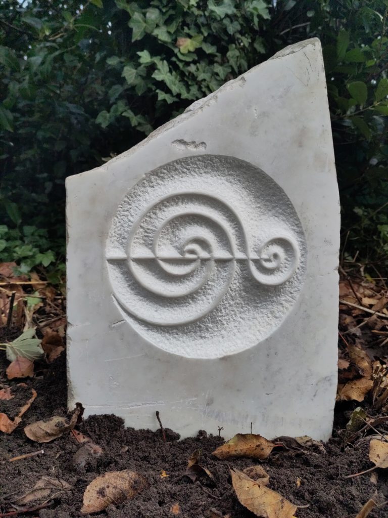 Das ist die Methode, die Marco Pogačnik entwickelt hat. Er meißelt sie aus Stein und setzt sie als sogenannte Lithopunktur an entsprechende Akupunkturpunkte der Landschaft und Erde. Teilweise hat er auch Metalle (Bronzeguss) mit dem Stein verbunden. Hierbei ist die genaue Ausrichtung wichtig.